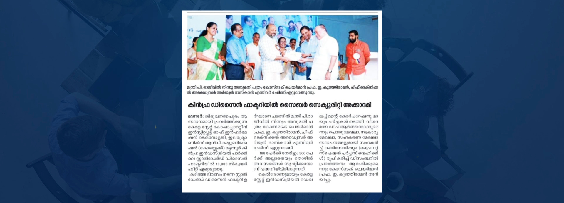 Kerala State Co-operative Institute of Information Technology Electronics & Communications Ltd. No. 4435 (COSTECH) is the only state wide Information Technology Co-operative Organization under Government of Kerala, with its headquarters at Thiruvananthapuram. Our core mission is to bring the lasting benefits of Information Technology to the door step of the common man.